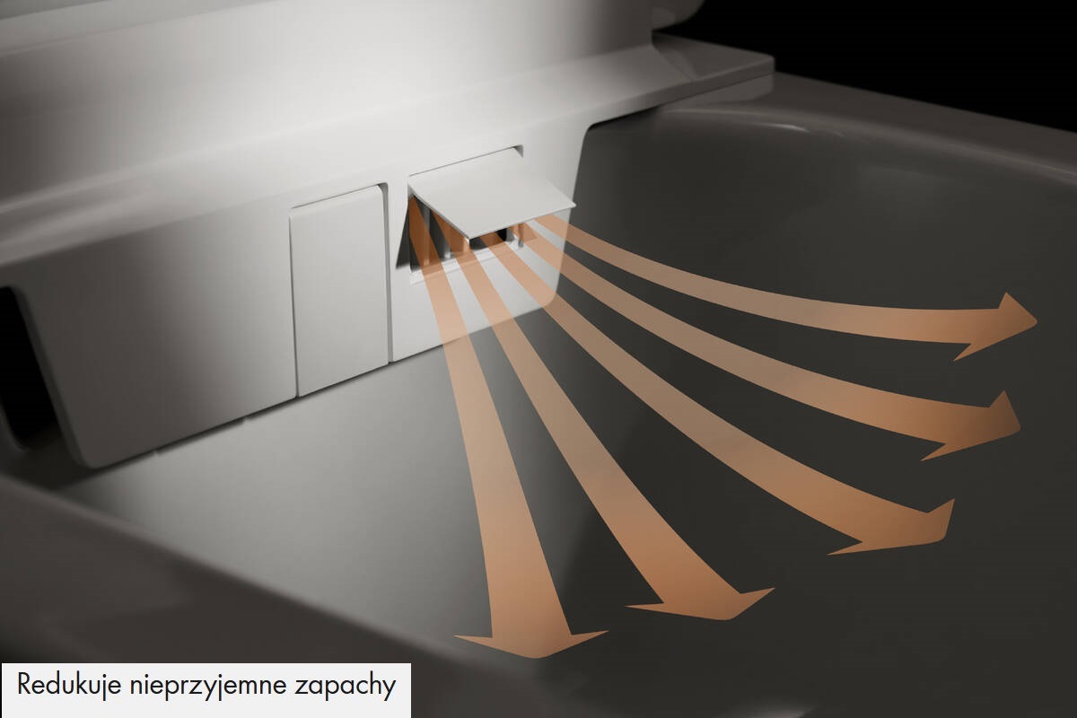 W desce sedesowej zintegrowano system pochłaniania zapachów, który redukuje nieprzyjemne zapachy w łazience. Na życzenie może działać również w trybie automatycznym.