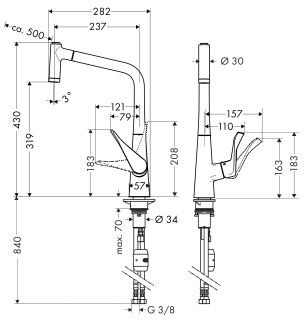 Opinie o: Hansgrohe Metris bateria kuchenna z wyciąganą wylewką z przełącznikiem stalowy 14820800