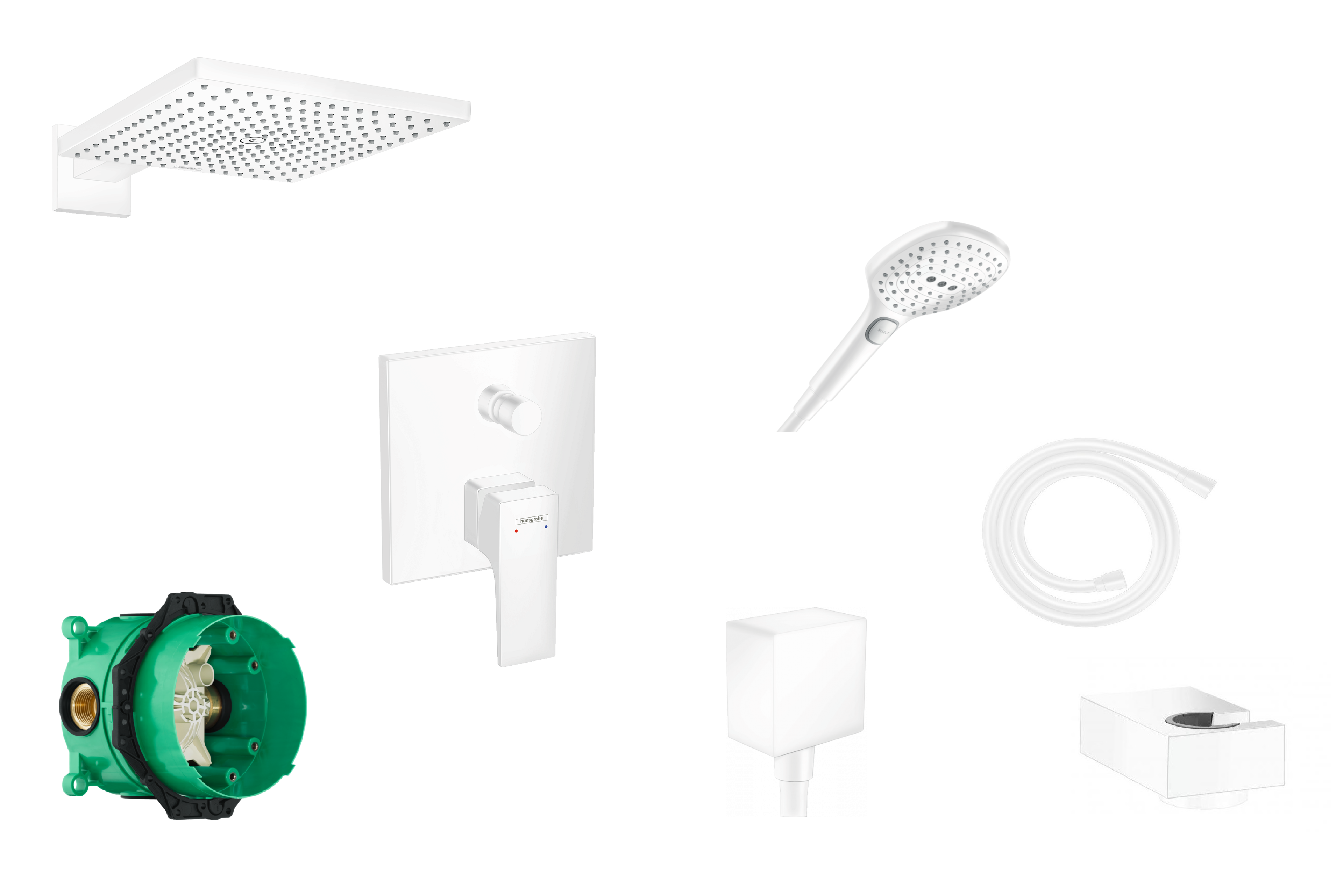 3. Hansgrohe FinishPlus Raindance E 300 1jet deszczownica z ramieniem prysznicowym 30x30 cm biały matowy 26238700
