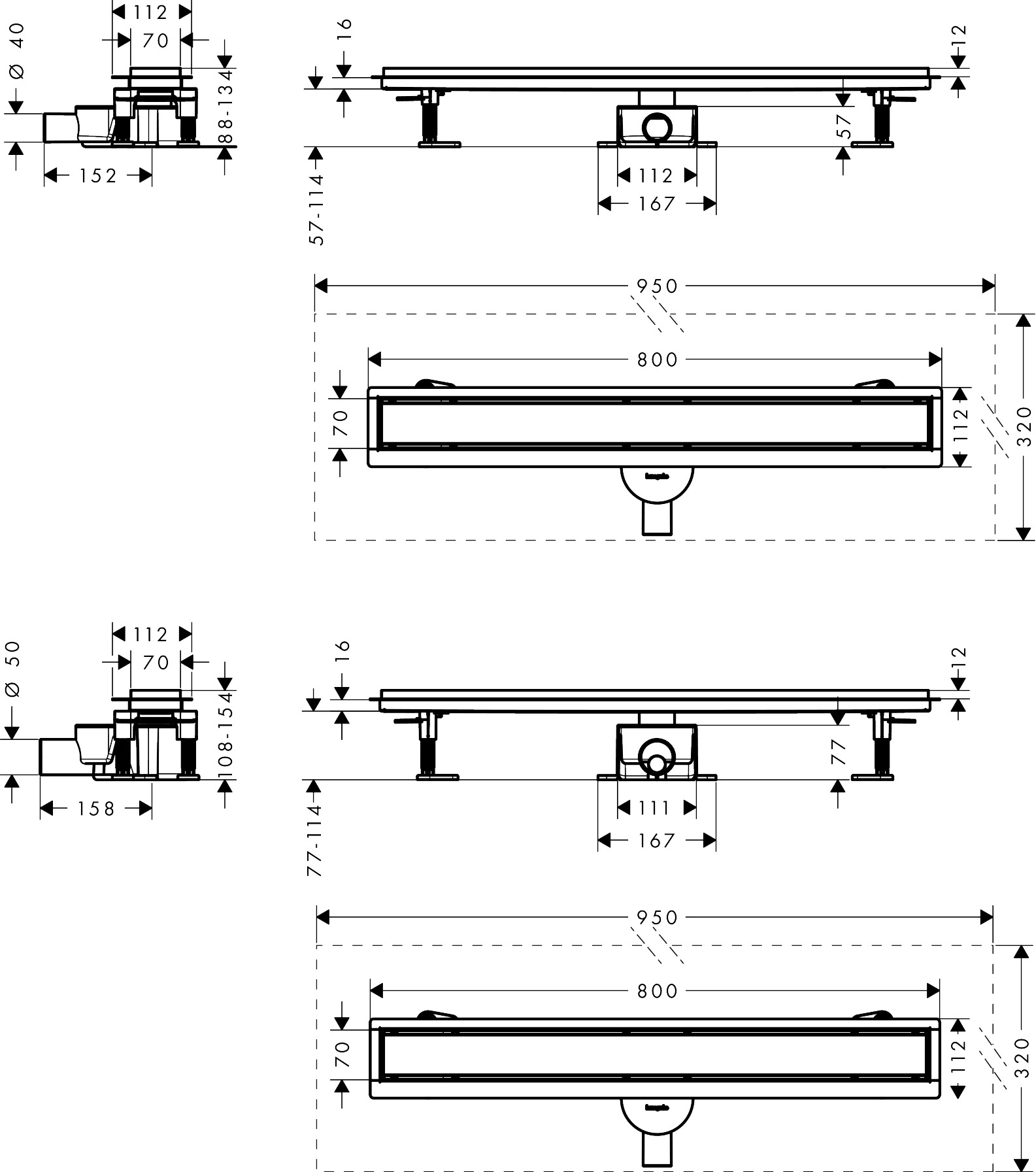 Hansgrohe RainDrain Go Kompletny odpływ liniowy 800, ruszt ozdobny/do wyłożenia płytkami, standardowy/niski