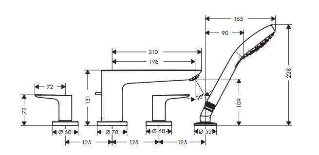 - zestaw podstawowy do baterii 4-otworowej do montażu na brzegu wanny - 13244180
