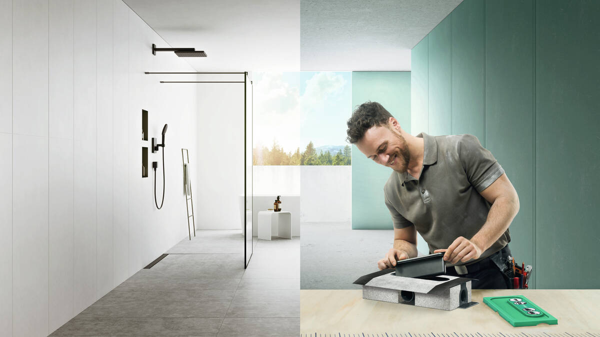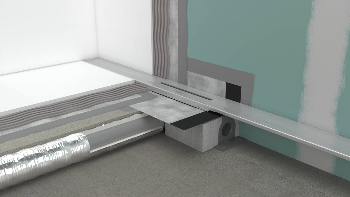 W składzie: zestaw podstawowy, syfon, wstępnie zamontowana membrana uszczelniająca, płyty do regulacji wysokości, pokrywa ochronna