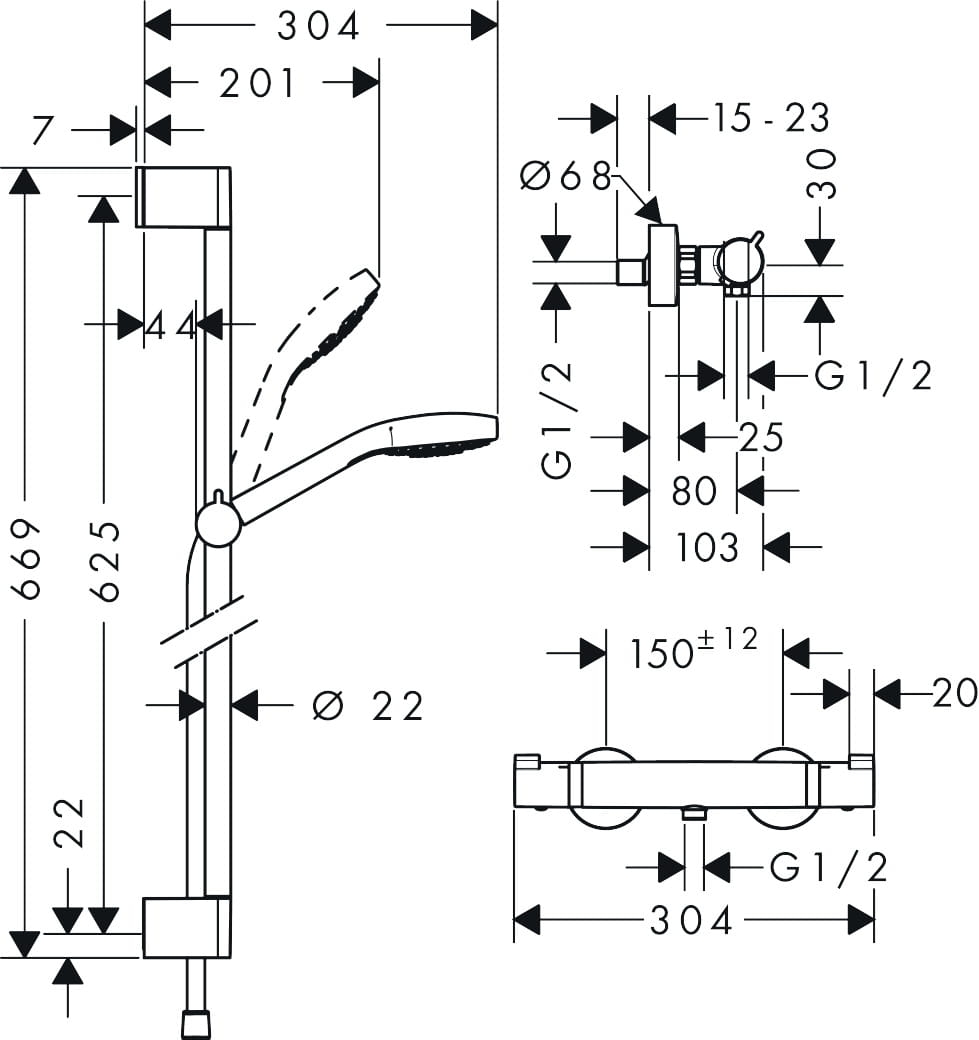 • Zestaw prysznicowy Croma Select S Vario 0,65m
