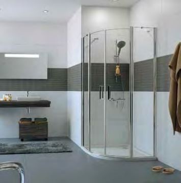 Aby skompletować narożną kabinę natryskową należy zamówić 2 sztuki drzwi. Możliwe rozwiązania asymetryczne.