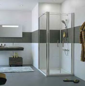 Aby skompletować narożną kabinę natryskową kwadratową/prostokątną należy zamówić drzwi oraz wybraną ściankę boczną.