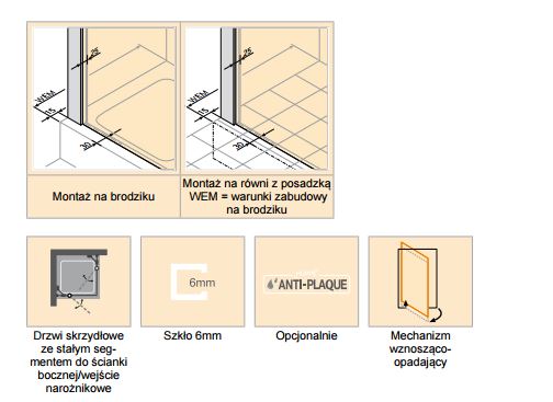 *w celu zamówienia drzwi / kabiny w wykończeniu innym niż prezentowane należy dodać do koszyka produkt z wybraną opcją dodatkową - widoczne poniżej jako produkty powiązane.