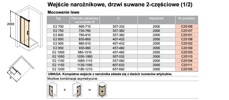 Ważne : Aby skompletować kompletną kabinę prostokątną/kwadratową należy zamówić dwa produkty o wybranych wymiarach.