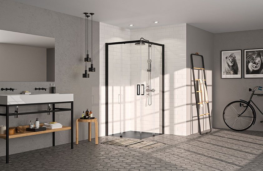 Łatwe czyszczenie. Drzwi suwane HÜPPE Classics 2 wyposażone są w system ułatwiający czyszczenie. Pozwala on na szybkie wypięcie suwanego segmentu dla łatwiejszego czyszczenia.