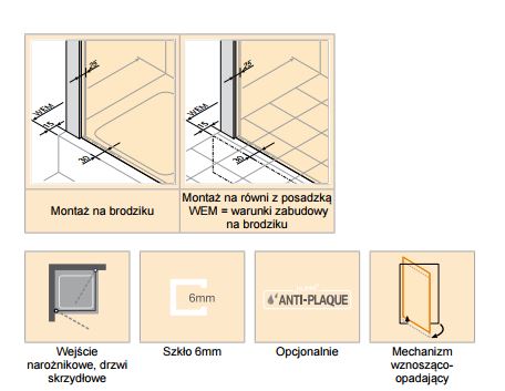 *w celu zamówienia drzwi / kabiny w wykończeniu innym niż prezentowane należy dodać do koszyka produkt z wybraną opcją dodatkową - widoczne poniżej jako produkty powiązane.