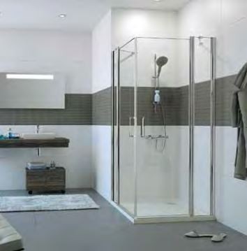 Prezentowana kabina : Szkło przeźroczyste, profile srebrny połysk