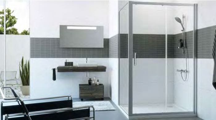 Prezentowana kabina : Szkło przeźroczyste, profile srebrny połysk