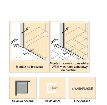 Do montażu wyłącznie z drzwiami Classic 2, brak możliwości montażu jako ścianka wolnostojąca