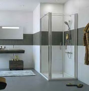 Prezentowana kabina : Szkło przeźroczyste, profile srebrny połysk