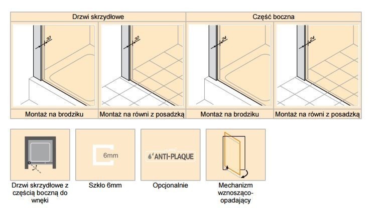 *w celu zamówienia drzwi / kabiny w wykończeniu innym niż prezentowane należy dodać do koszyka produkt z wybraną opcją dodatkową - widoczne poniżej jako produkty powiązane.