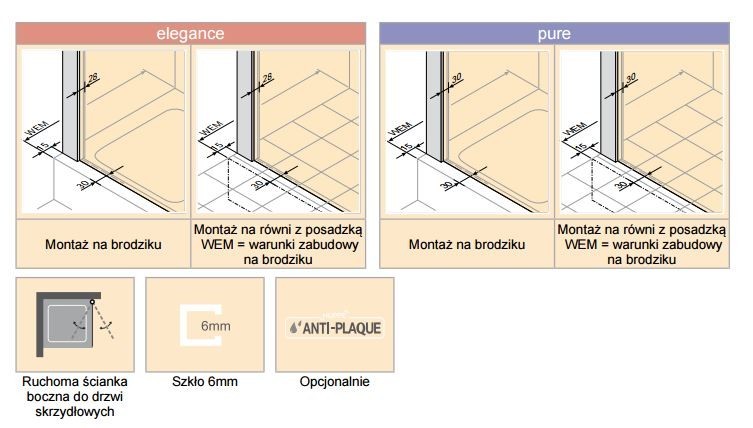 Aby skompletować kabinę natryskową narożną należy do prezentowanej ścianki domówić wybrane drzwi skłądane/skrzydłowe