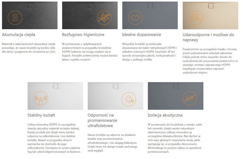 HUPPE EasyFlat najnowocześniejszy design swojego prysznica! Purystyczny i prostoliniowy brodzik nada szyk Twojej łazience. Stylowa atrakcja: niezwykle płaska powierzchnia prysznicowa posiada całkowicie płaską pokrywę odpływu. Dostęp bez ograniczeń o najwyższym komforcie – bez przeszkadzających barier Twoja łazienka powiększy się optycznie!