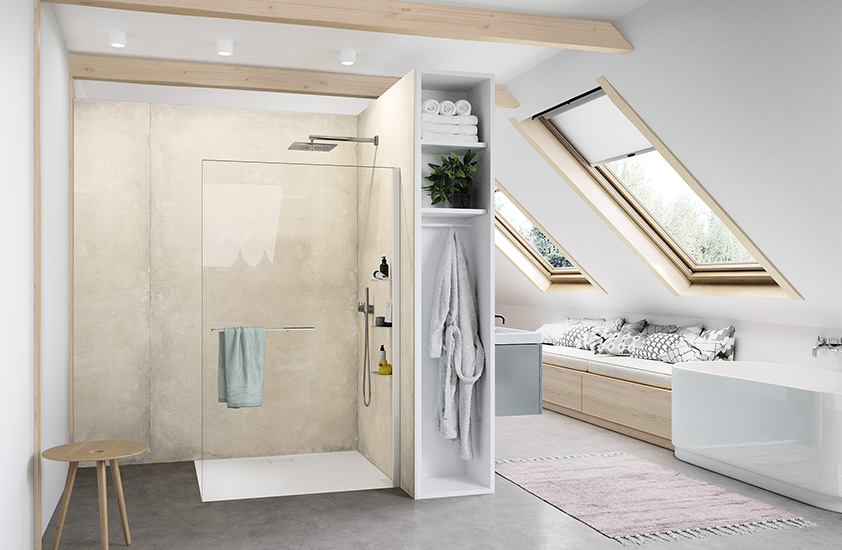 To doskonała oaza wellnessu! Tak komfortowa i przyjemna może być kąpiel pod prysznicem, nawet w najmniejszych łazienkach! Dzięki HÜPPE Select+ masz nie tylko dość miejsca pod prysznicem i ręcznik w zasięgu ręki.