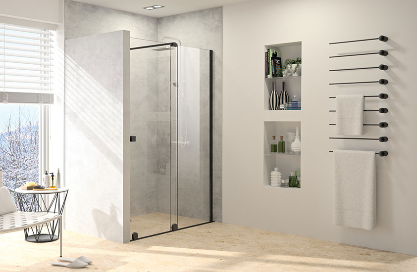 Huppe Xtensa Pure Black Edition - drzwi przesuwne oparte na innowacyjnym systemie jezdnym