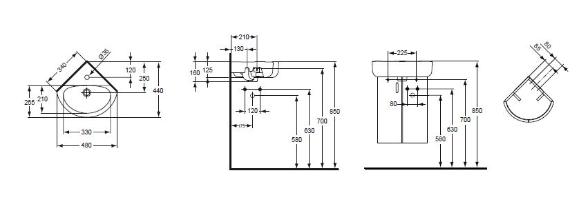 Wersja umywalki o zmniejszonej odległości od ściany przeznaczona do wąskich pomieszczeń.