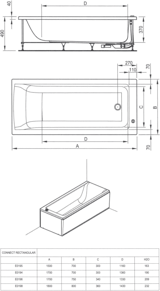 Wanna do montażu z odpowiednimi panelami. W komplecie nogi do wanny z zestawem montażowym do paneli. Wanna bez typowego otworu przelewowego, zestaw odpływowo-przelewowy IDEAL WASTE w komplecie.
