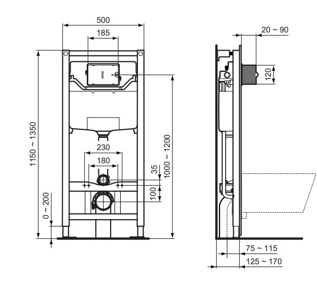Przeznaczony do stosowania z wiszącymi miskami WC. Do montażu przed litą ścianą lub pomiędzy dwoma lekkimi ścianami z płyt gipsowo-kartonowych, zgodnie z instrukcją obsługi.