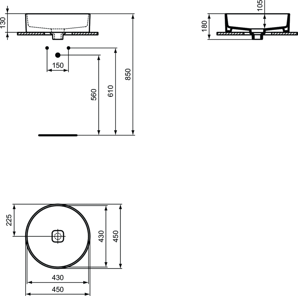 Umywalka nablatowa okrągła 45 cm