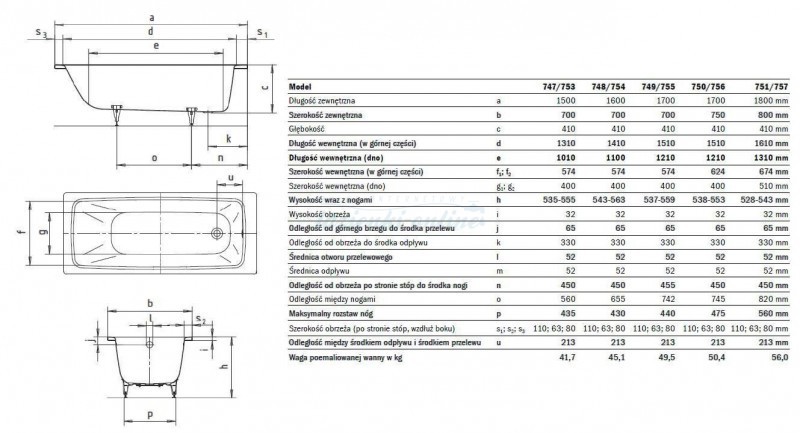 Wykonana z 3,5 mm stali emaliowanej Kaldewei