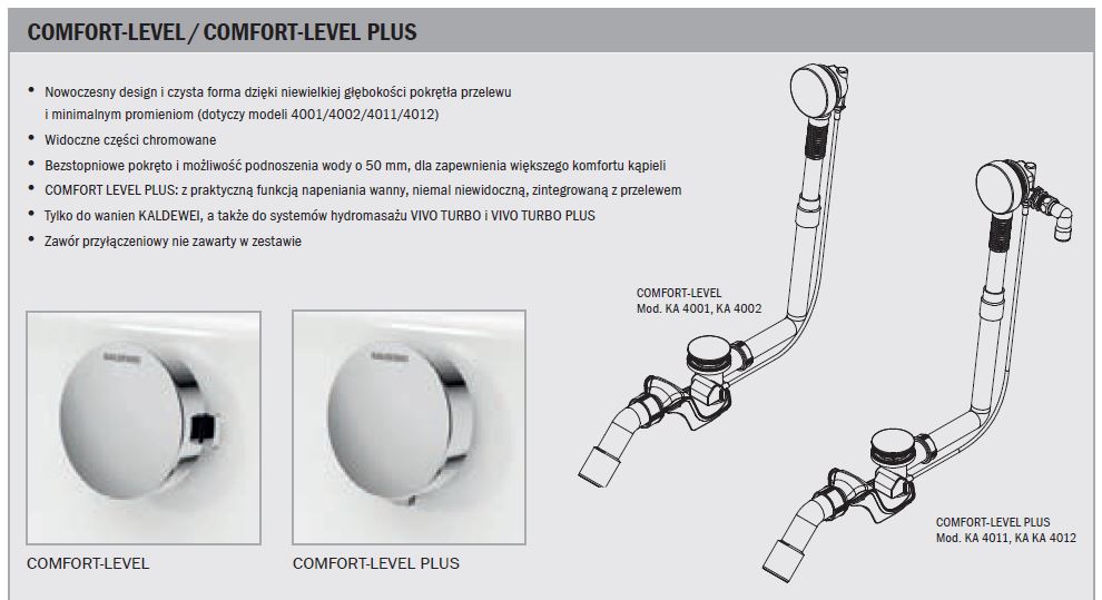 Zestaw odpływowo-przelewowy dedykowany do wanien Kaldewei.