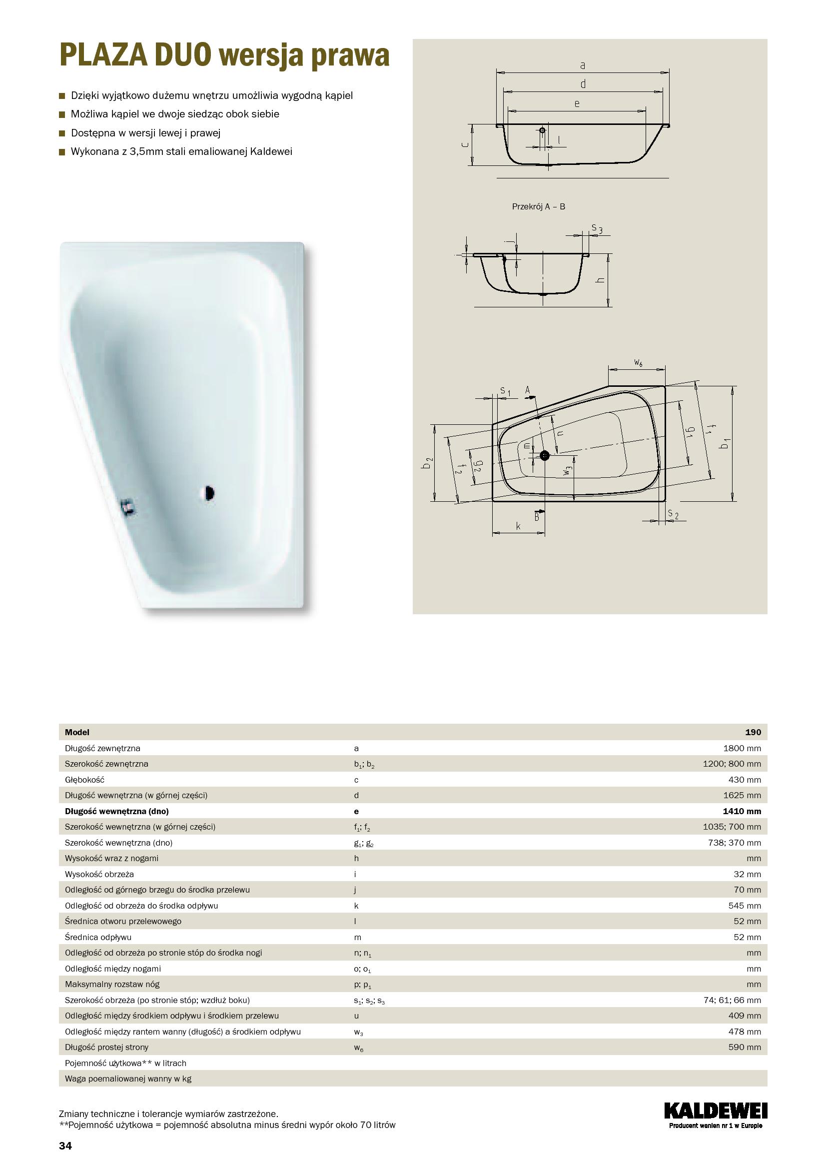 Wykonana z 3,5mm stali emaliowanej Kaldewei