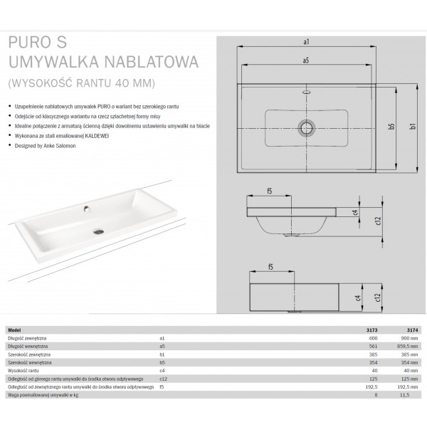 PURO UMYWALKA WPUSZCZANA W BLAT