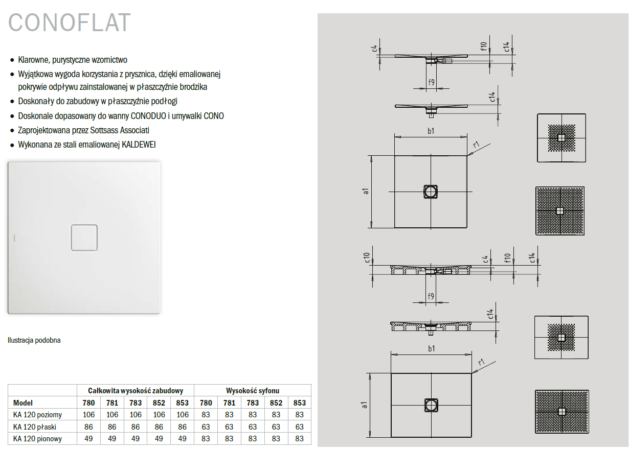 Zestaw odpływowy KA 120 poziomy do brodzików CONOFLAT i SUPERPLAN PLUS