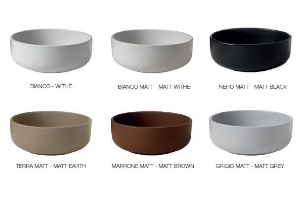 Kolekcja Ciotola to pięć modeli umywalek dostępne w sześciu kolorach oraz pięciu wykończeniach specjalnych