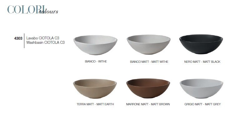 Kolekcja Ciotola to pięć modeli umywalek dostępne w sześciu kolorach oraz pięciu wykończeniach specjalnych
