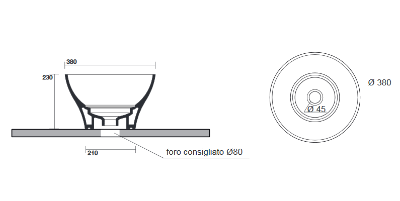 Oryginalna umywalka stawiana na blat, do kompletowania z dekoracyjną pokrywą odpływu.