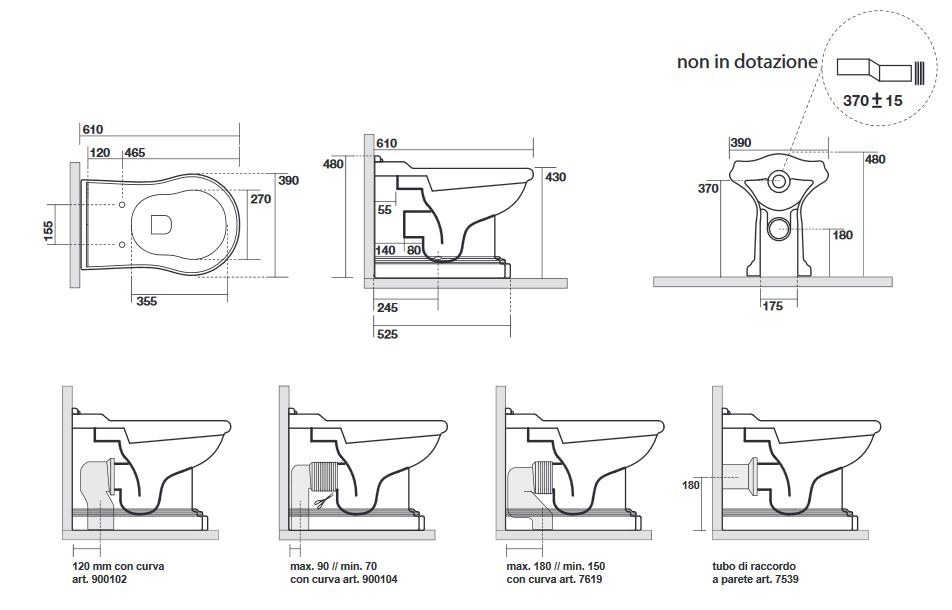 Muszla stojąca przyścienna, odpływ uniwersalny.