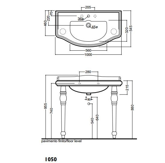 Umywalkę 1050 można opcjonalnie kompletować z następującymi elementami :
