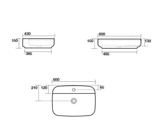 Umywalka stawiana na blat, z otworem na baterię.