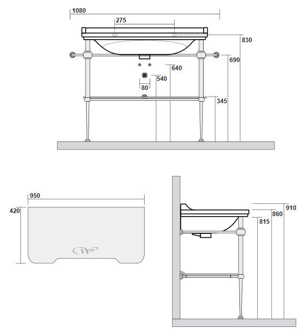 Stylowy chromowany stelaż pod umywalkę Waldorf 100 cm.
