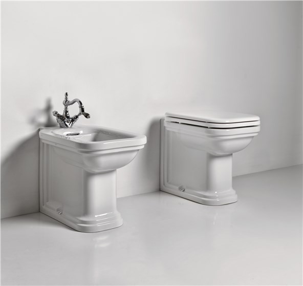 Muszla stojąca będąca elementem kolekcji Kerasan Waldorf nawiązującej stylem do przepychu królującego w amerykańskiej architekturze z początków XX wieku. Linia ekskluzywnej ceramiki i armatury projektu Massimiliano Cicconi.