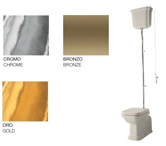 Kolekcja ceramiki dostępna w wykończeniu białym oraz czarnym. Metalowe elementy ozdobne dostępne w chromie, złocie oraz brązie.