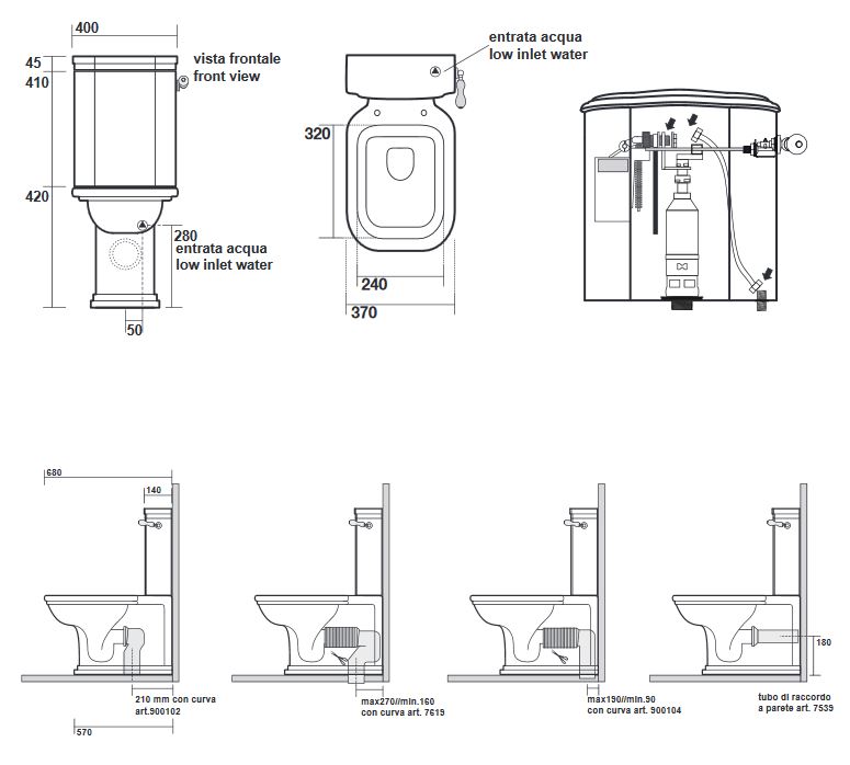 Kolekcja ceramiki dostępna w wykończeniu białym oraz czarnym. Metalowe elementy ozdobne dostępne w chromie, złocie oraz brązie.