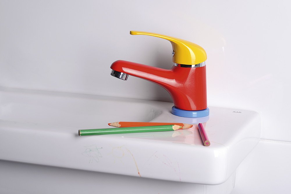 Mała, dedykowana do niewielkich umywalek kolorowa bateria dla najmłodszych.