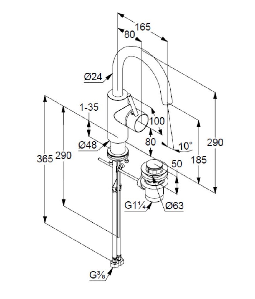 Kludi Bozz jednouchwytowa bateria umywalkowa 185 DN 15