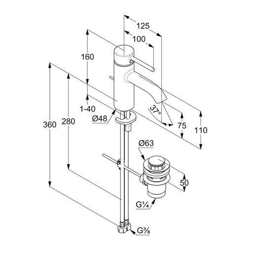 •   jednouchwytowa bateria umywalkowa 75 DN 15
