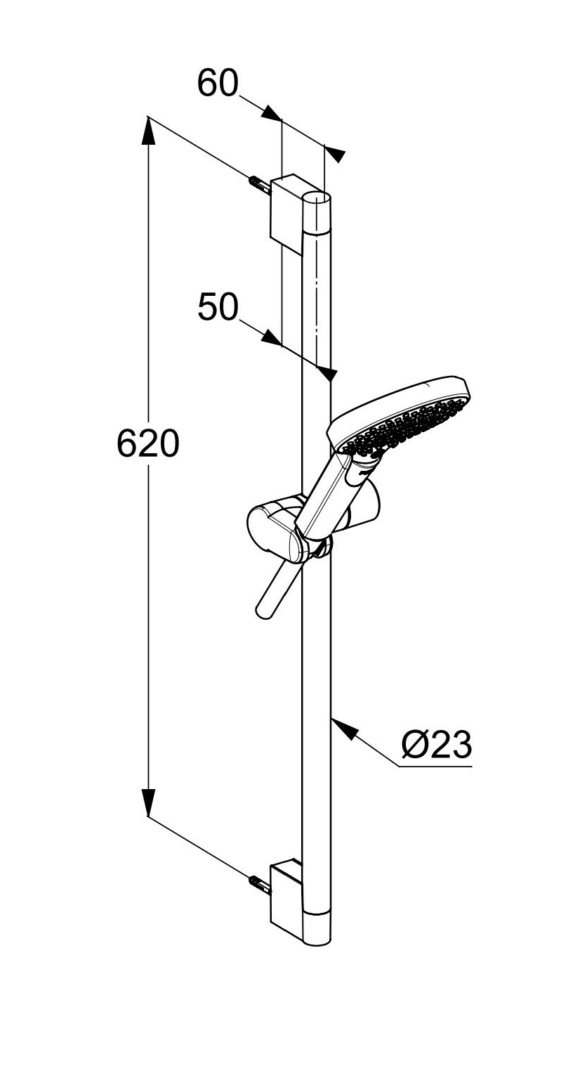 Kludi Dive X zestaw prysznicowy drążek 60 cm słuchawka 3S chrom 696300500