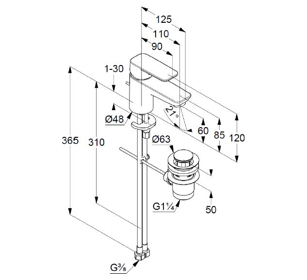 • jednouchwytowa bateria umywalkowa 60 DN 15