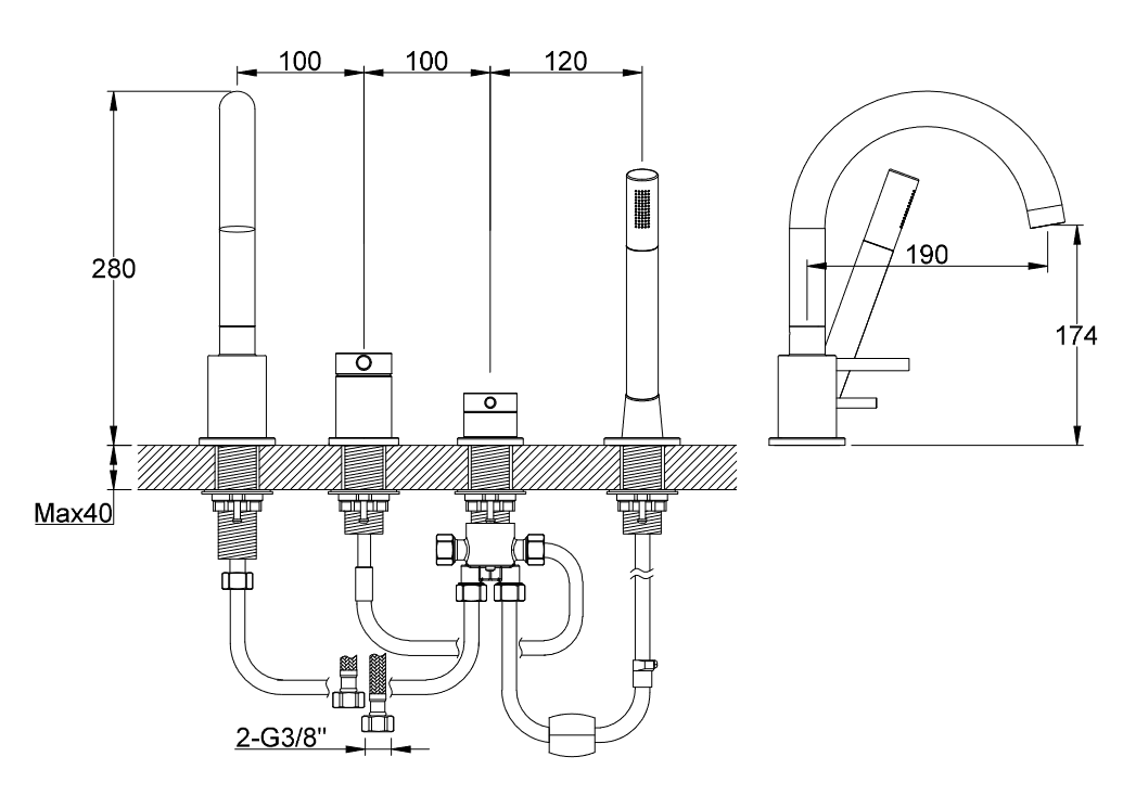 Kohlman Axel Gold bateria wannowa 4-otworowa
