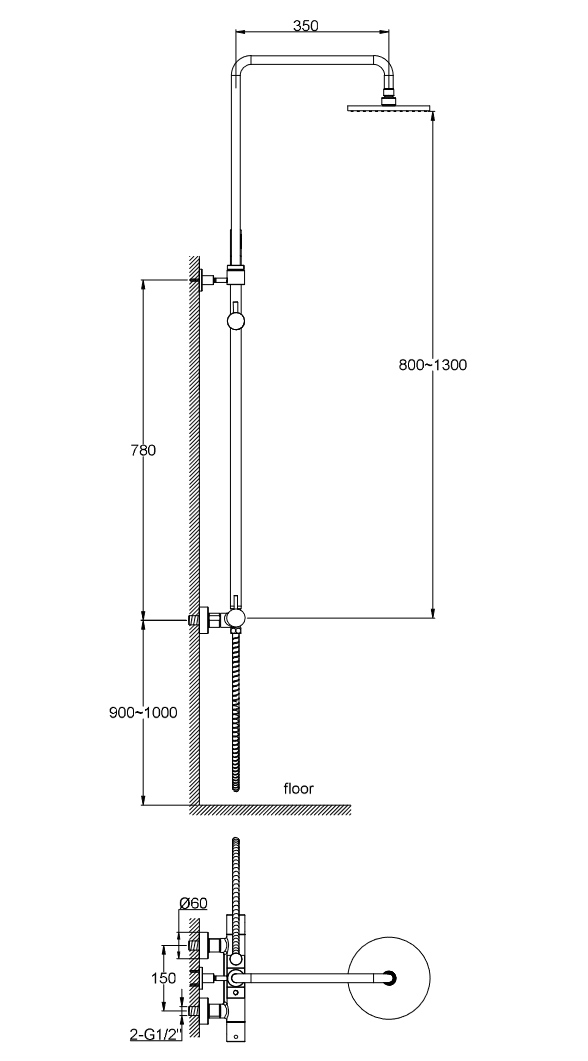 Kohlman Axel Gold zestaw prysznicowy natynkowy