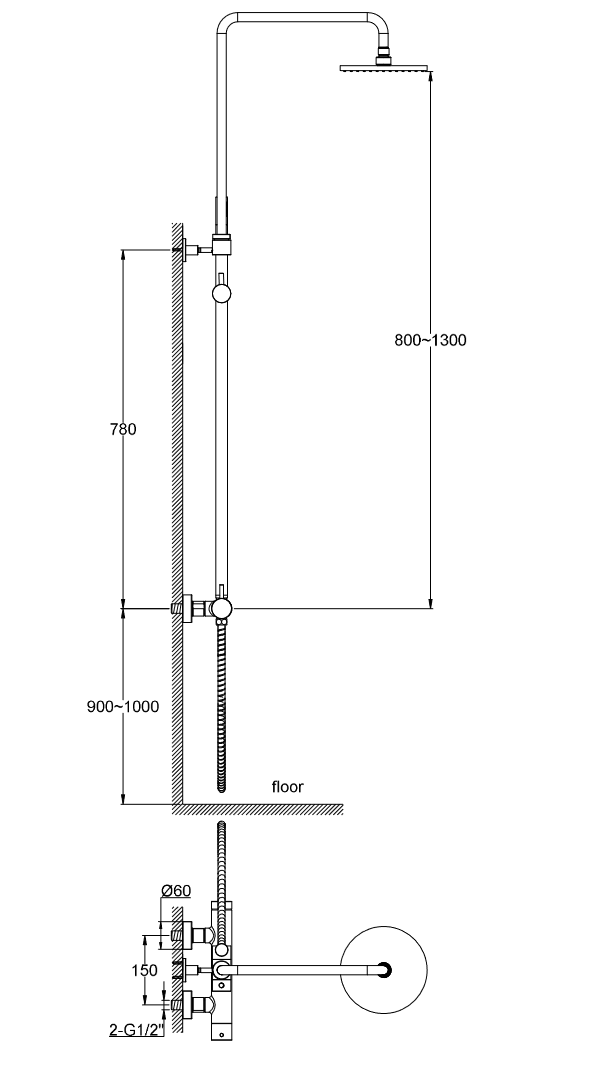 Kohlman Axel Gold zestaw prysznicowy natynkowy