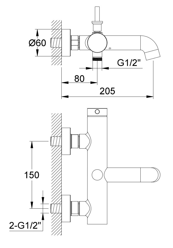 Kohlman Axel Gray bateria wannowa ścienna grafit szczotkowany QW110AG
